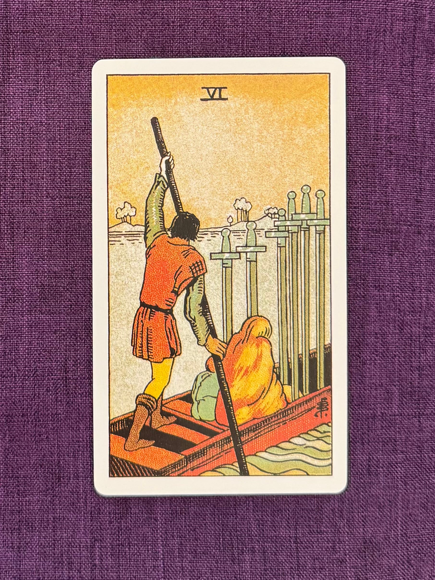 For this blog, I pulled the Six of Swords. This is the card of transition… moving from rough waters to calm waters, from one way of being to another;